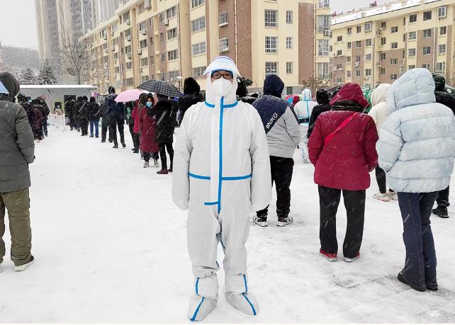 漫天風(fēng)雪,氣溫低至零下,依然擋不住廣大志愿者抗疫的腳步。11月30日以來(lái),集團(tuán)黨員干部職工全力以赴投身在抗疫第一線,在抗疫戰(zhàn)場(chǎng)上“連軸轉(zhuǎn)”。有的干部職工雖然不是黨員,卻在關(guān)鍵時(shí)刻沖鋒陷陣,第一時(shí)間到社區(qū)報(bào)到,支援抗疫工作。有的黨員從12月1日晚上8點(diǎn)就開(kāi)始在社區(qū)卡口執(zhí)勤,一直干到次日凌晨1點(diǎn),寒風(fēng)刺骨卻無(wú)怨無(wú)悔。有的黨員老公在單位值守,自己一個(gè)人在家照顧孩子,為了支援社區(qū)疫情防控,早上5點(diǎn)就把孩子叫醒讓對(duì)門(mén)鄰居幫忙照看,義