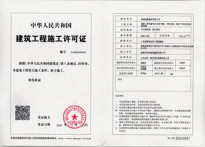 建設(shè)單位:威海城建集團(tuán)有限公司                       負(fù)責(zé)人:吳曉東