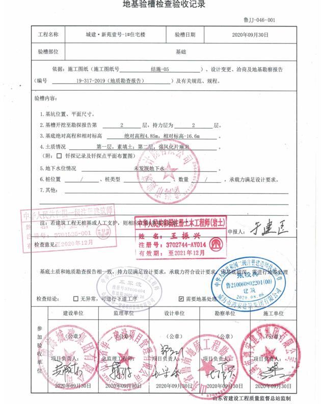 勘察單位:山東省魯南地質(zhì)工程勘察院                 負(fù)責(zé)人:王振興
