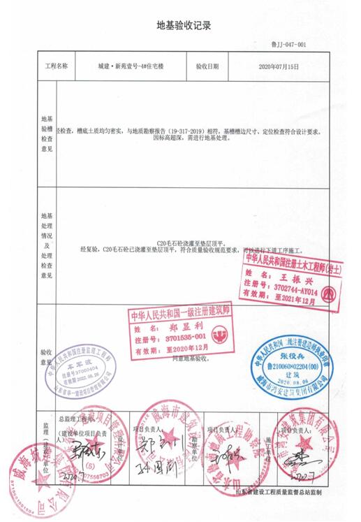 施工單位:威海市鴻安建筑集團(tuán)有限公司             負(fù)責(zé)人:張役兵
